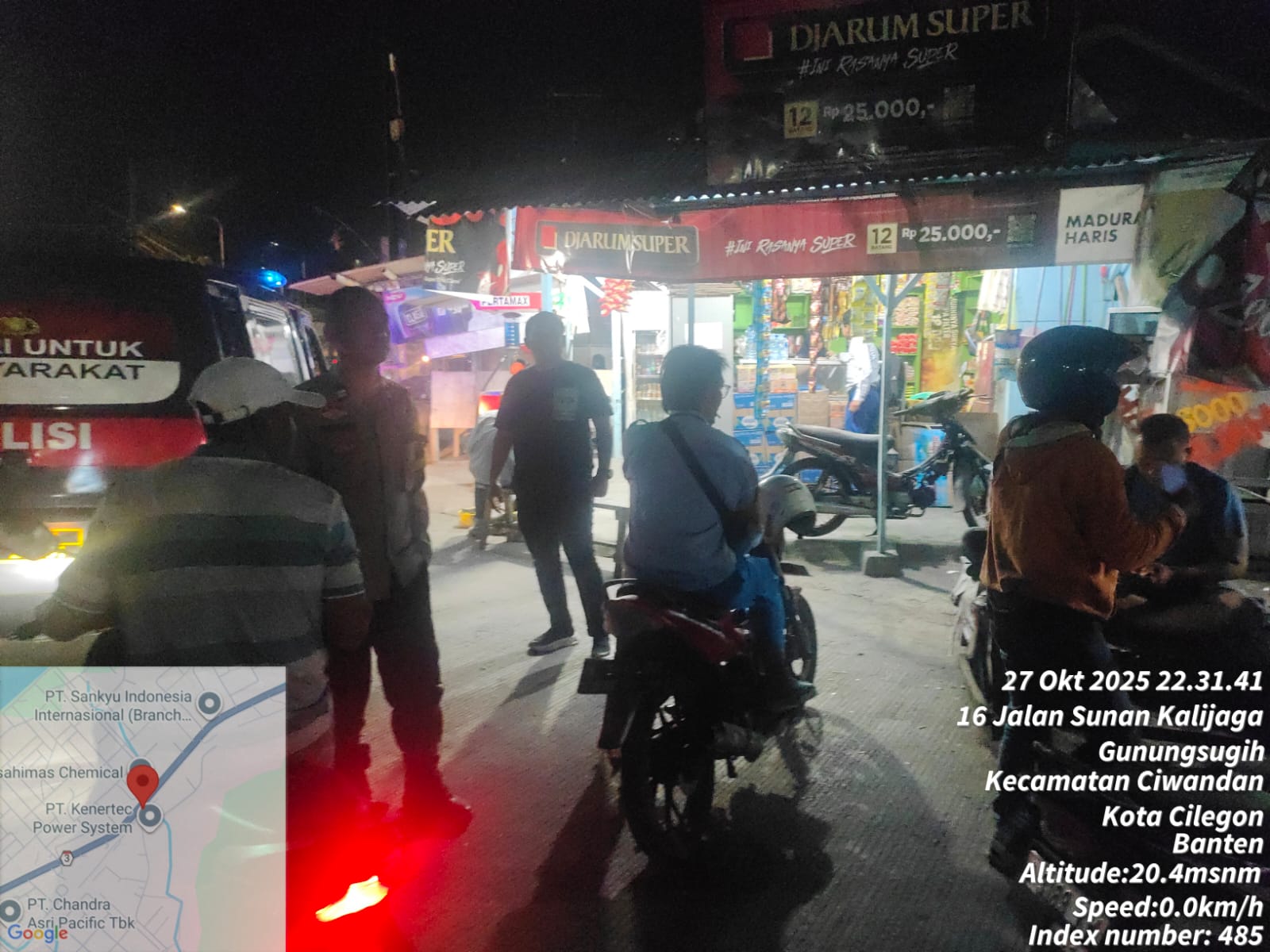 Cilegon - Personil Polsek Ciwandan Polres Cilegon Polda Banten Selalu Melaksanaan Kegiatan KRYD (Kegiatan Rutin Yang Ditingkatkan) Patroli Rutin malam hari di daerah hukum Polsek Ciwandan Guna Persempit Ruang Pelaku Tindak Kejahatan, Selasa (28/10/2025).