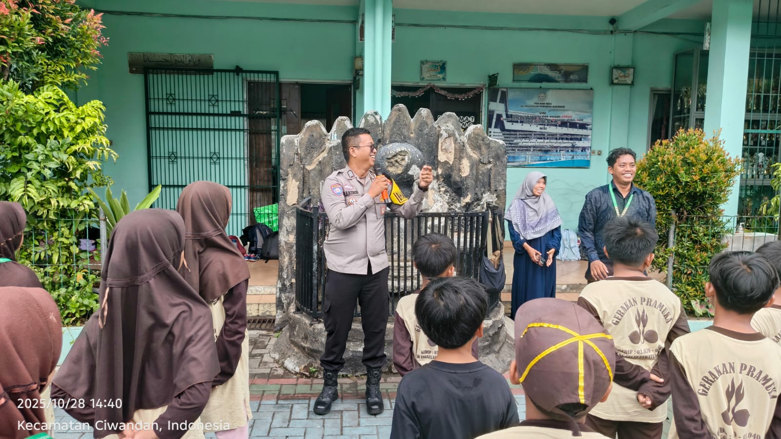 Cilegon - Bhabinkamtibmas Kelurahan Samangraya Polsek Ciwandan Polres Cilegon Polda Banten BRIPKA Marisco melaksanakan kegiatan Program Polisi Sahabat Anak dalam rangka Pelaksanaan Commander Wish Kapolda Banten. Kegiatan ini dilaksanakan di SD Unggulan Uswatun Hasanah Kelurahan Samangraya Kecamatan Citangkil Kota Cilegon, Selasa (28/10/2025).