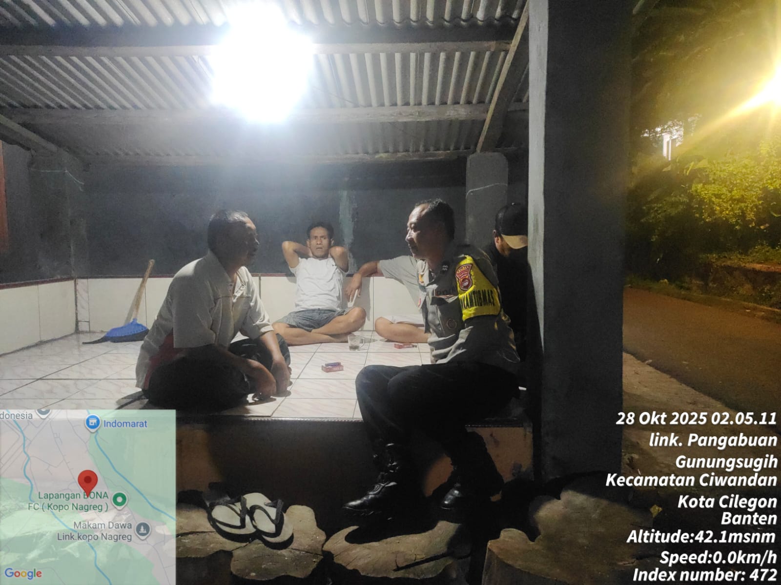 Cilegon - Bhabinkamtibmas Polsek Ciwandan Polres Cilegon Polda Banten kontrol Pos Ronda dan Berikan himbauan kepada pihak terkait dan warga, agar kegiatan Siskamling ditingkatkan lagi, Selasa (28/10/2025).