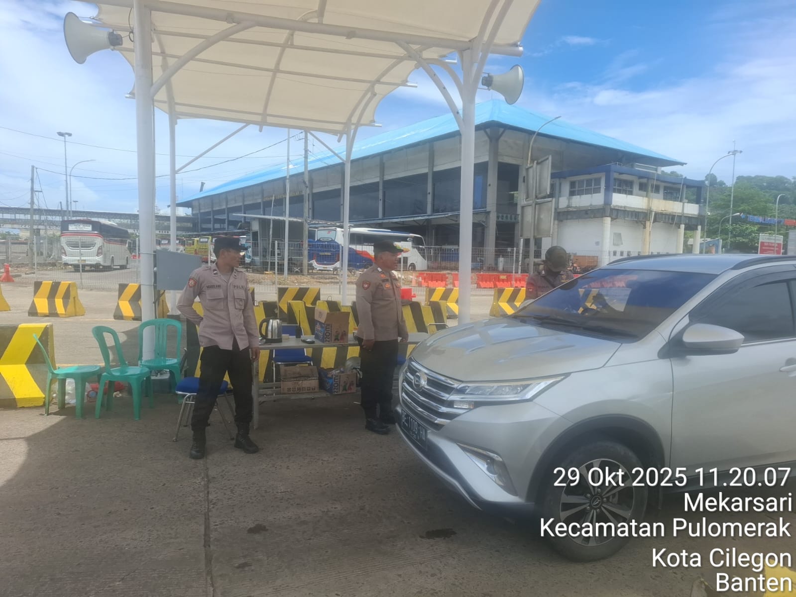 Cilegon - Personel Polsek Kskp Merak Polres Cilegon Polda Banten melaksanakan sambang dan patroli kawasan pelabuhan merak dalam rangka menjaga Harkamtibmas di Kawasan Pelabuhan Merak, Rabu (29/10/2025).