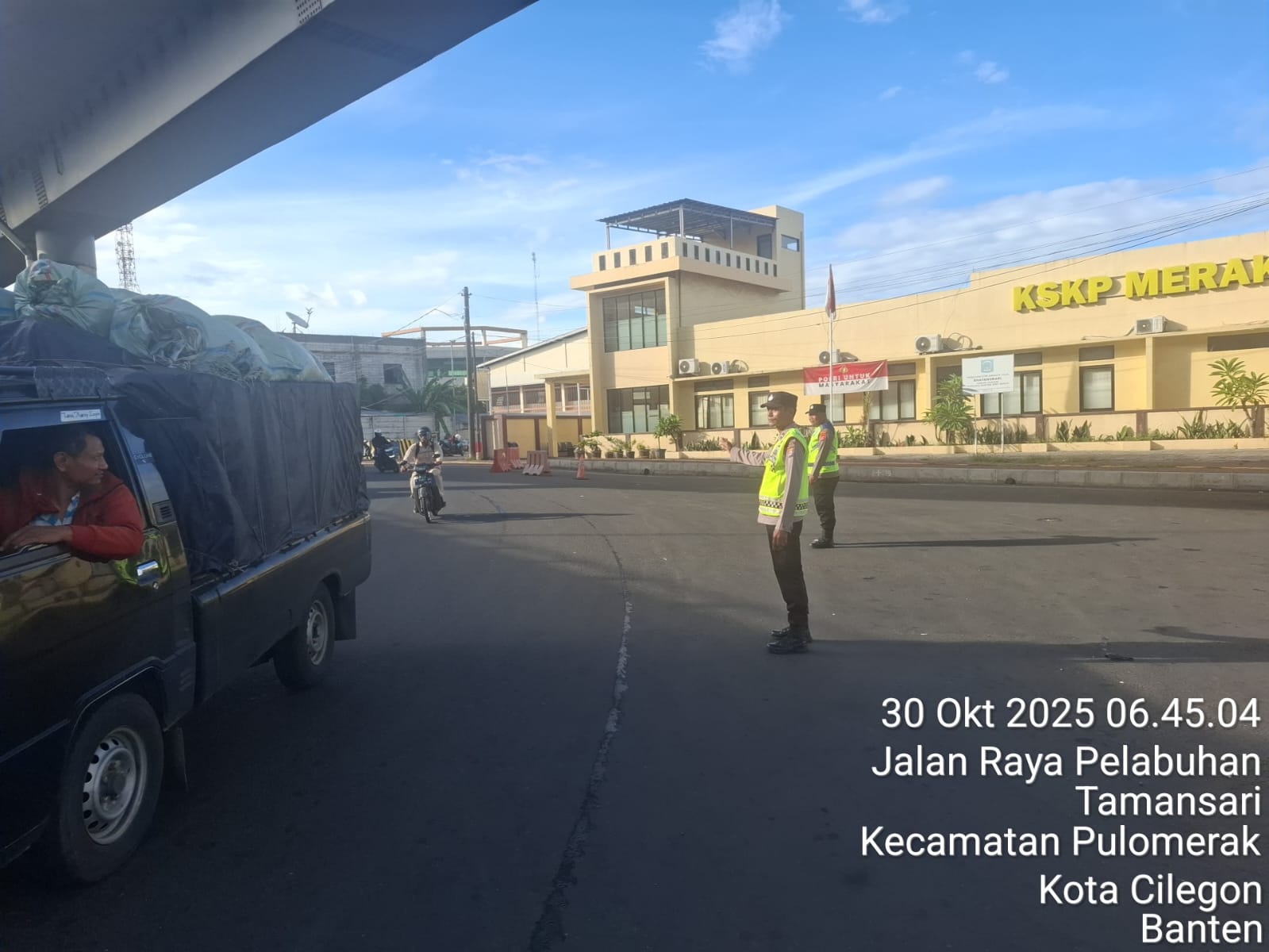 Tingkatkan Pelayanan, Personel Polsek KSKP Merak Lakukan Pengaturan Antrian Penyeberangan Merak–Bakauheni