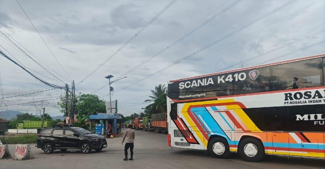 Polsek cibeber lakukan stromg point di titik rawan macet