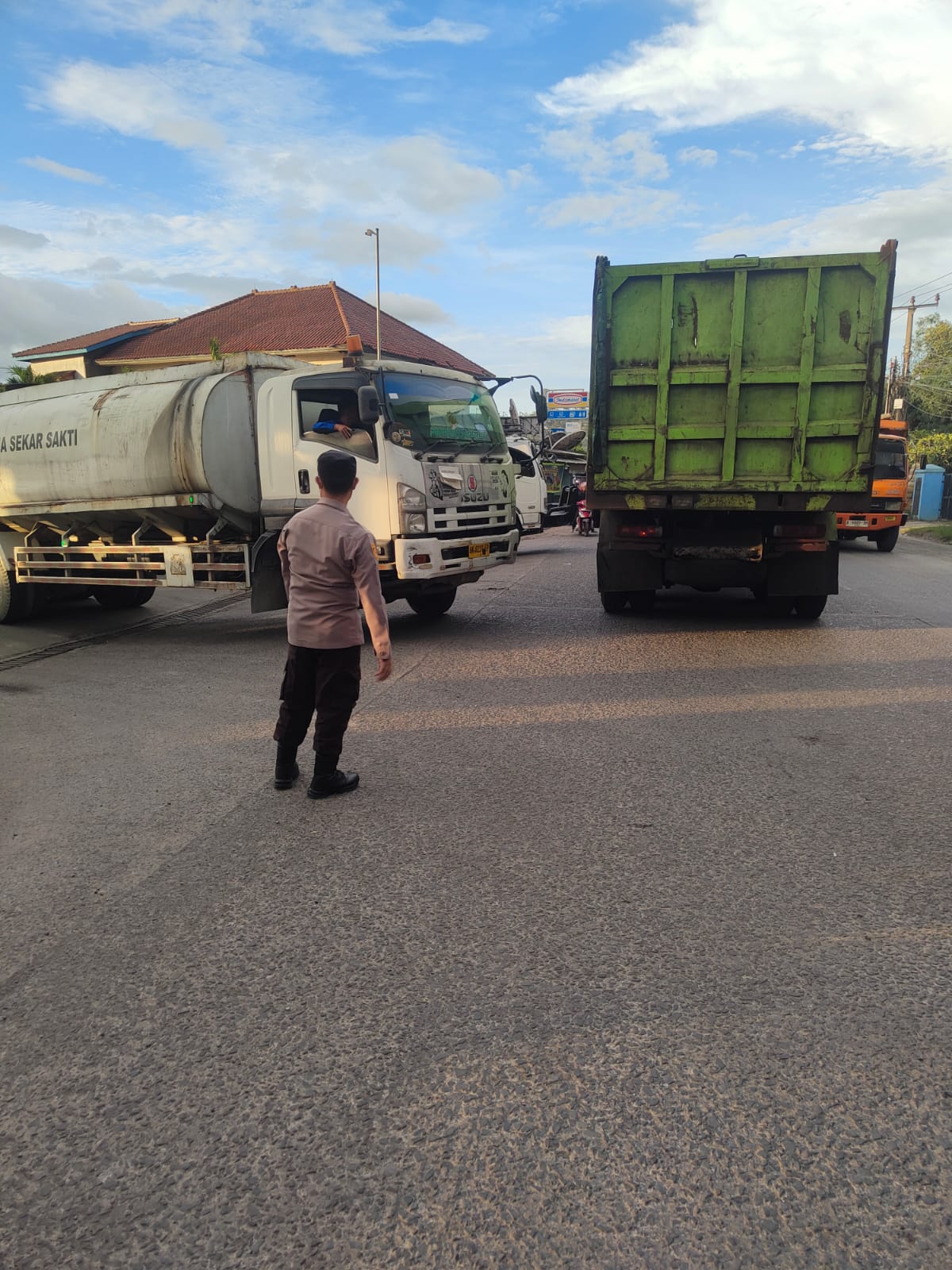 Bripka Zaenal Polsek Bojonegara Polres Cilegon Atur Lalu-Lintas Dalam Pelayanan Pagi Hari Di Pom Bensin Bojonegara