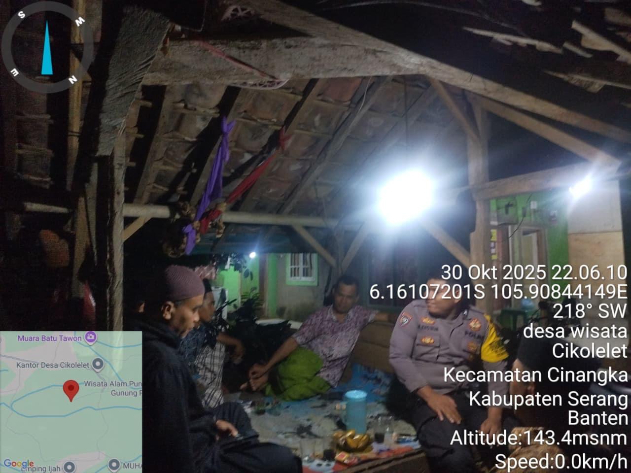 *Polres Cilegon* || Personil Bhabinkamtibmas Polsek Cinangka melaksanakan Program Komandan Wish Kapolda Banten RONDA SATKAMLING menyampaikan komunikasi dengan Petugas Siskamling agar berperan aktif dalam menciptakan Harkamtibmas yang aman dan Kondusif, Jumat (31/10/2025).