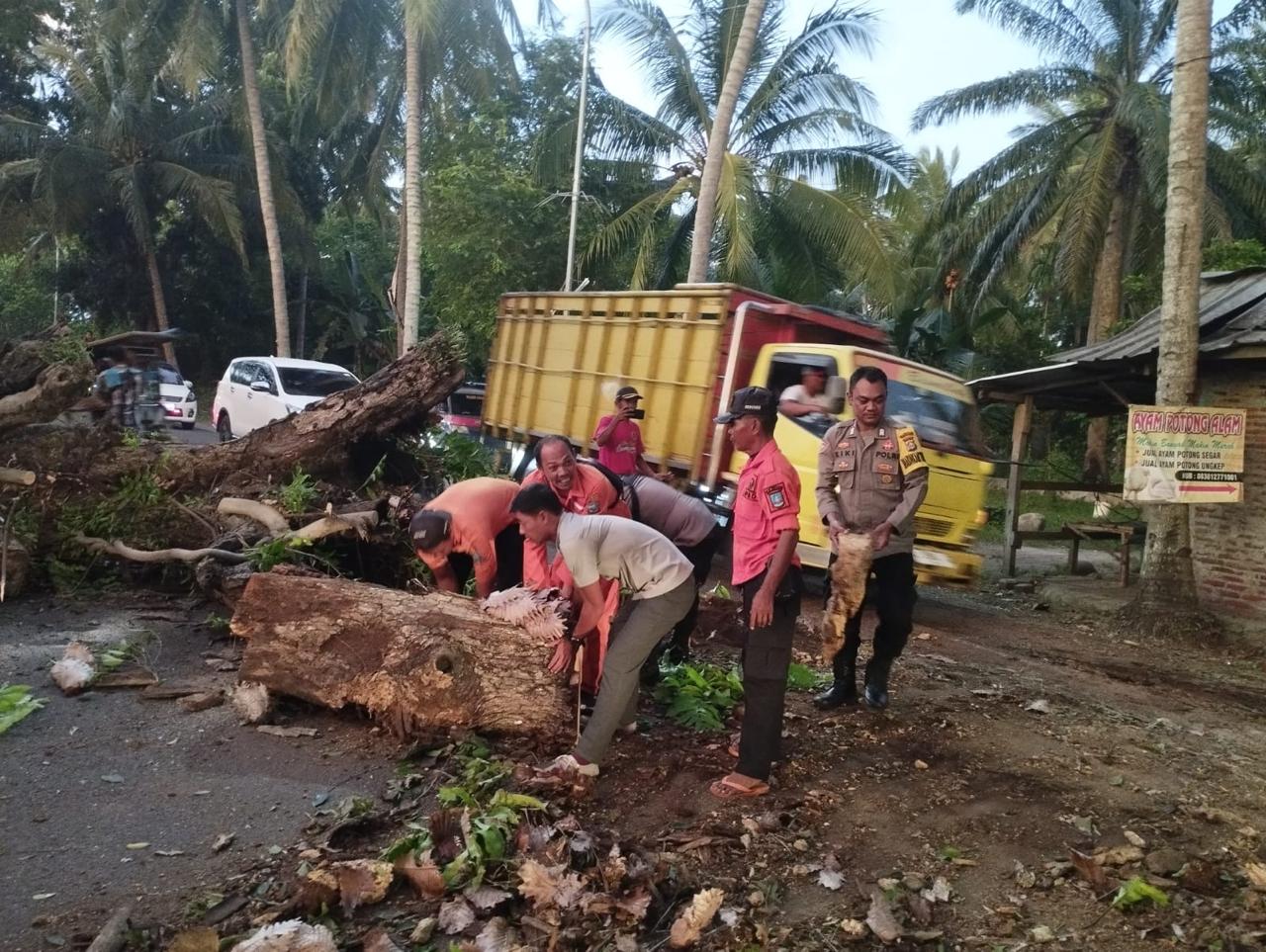 *Polres Cilegon* - di Jalan Raya Cinangka-Palka Tepatnya di Kp. Lebaksawo Ds. Sindanglaya Kec. Cinangka Kab. Serang telah terjadi pohon tumbang yang disebabkan oleh Angin dan Pohon yang sudah berumur tua, Sabtu (01/11/2025).