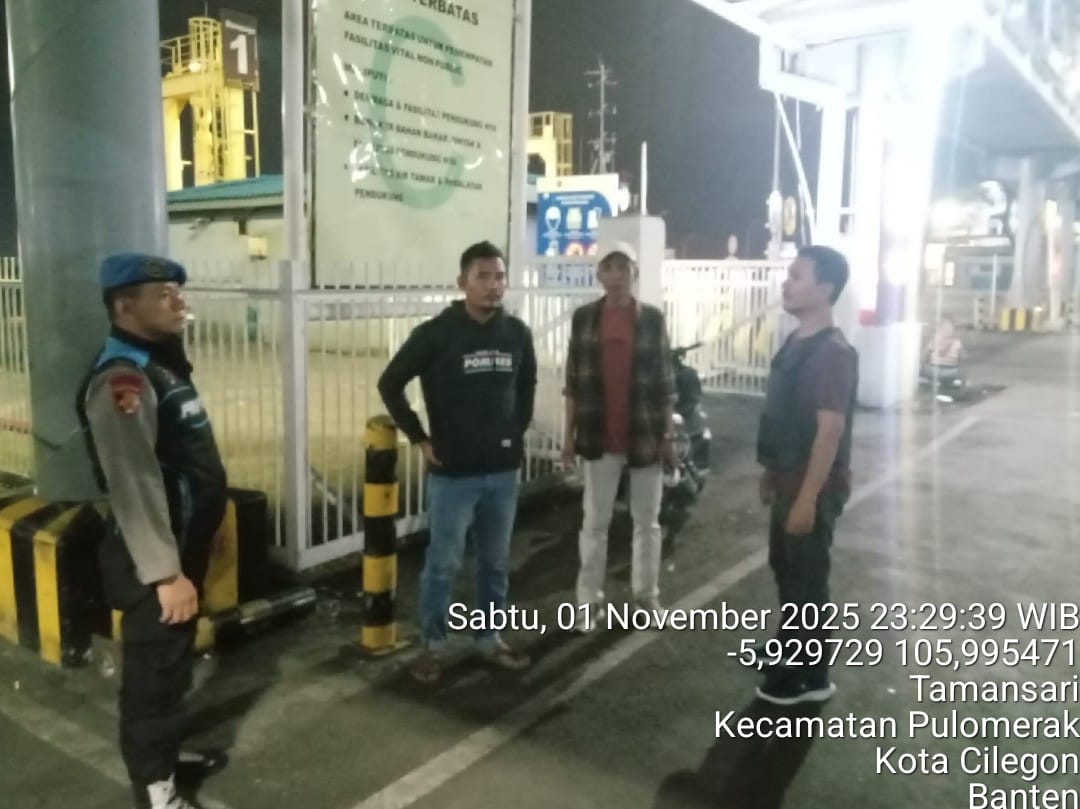 Cilegon - Personil Polsek Kskp Merak Polres Cilegon melaksanakan patroli di kawasan pelabuhan merak memberikan rasa aman dan damai, Minggu (02/11/2025)
