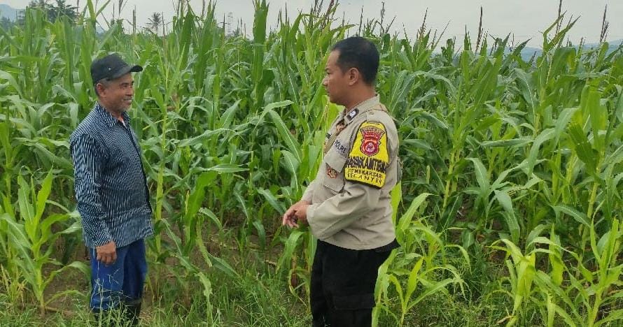 Bhabinkamtibmas Polsek Anyar dengan Petani Cek Lahan Jagung