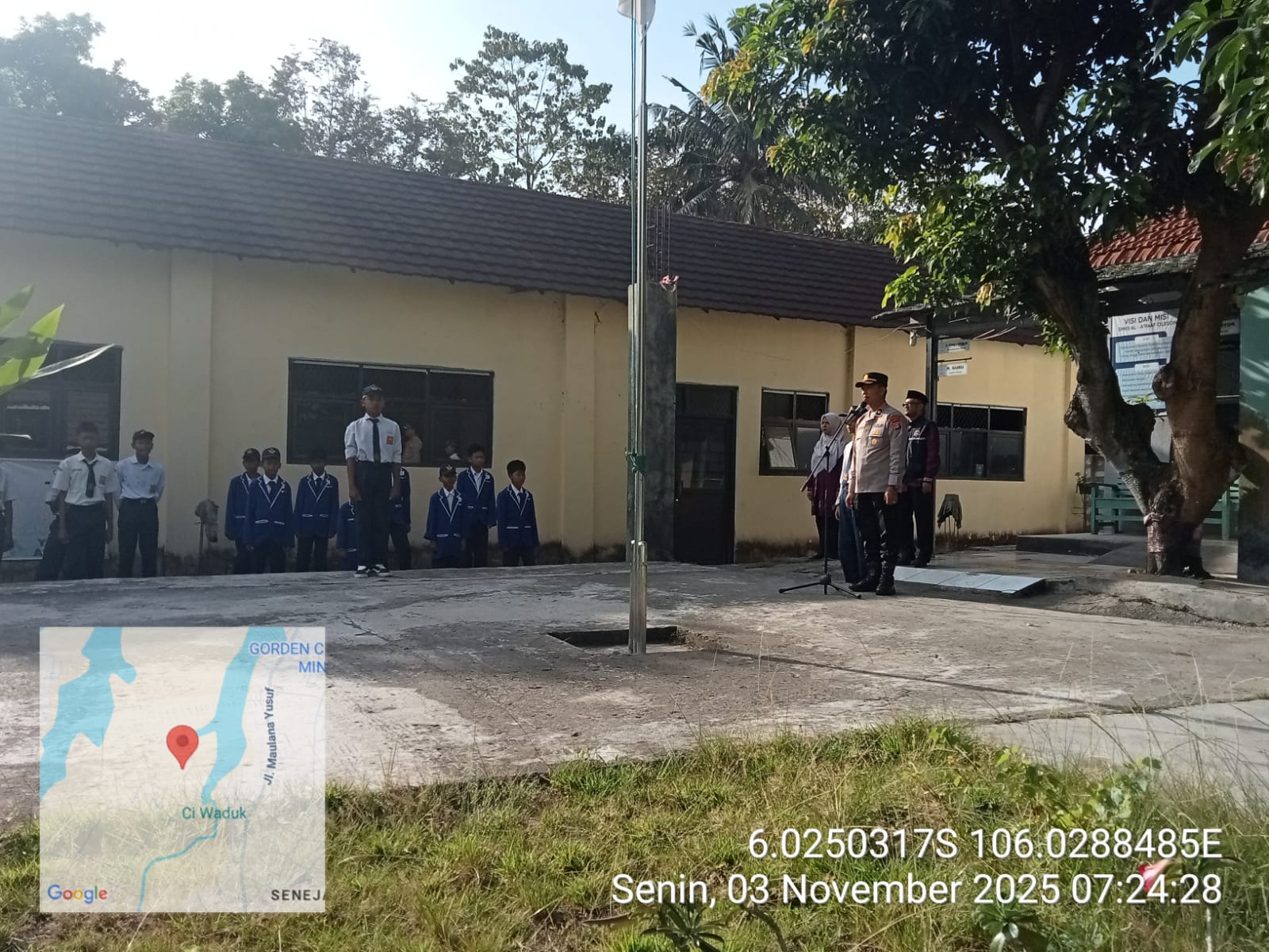Cilegon – Bhabinkamtibmas Polsek Ciwandan Dampingi Kabag SDM Polres Cilegon Polda Banten KOMPOL Entang Cahyadi Menyambangi SMP Al-A’raaf Dikelurahan Tamanbaru Kecamatan Citangkil, Menyampaikan Pesan-pesan Kamtibmas Dan Memberikan Imbauan, Senin (03/11/2025).