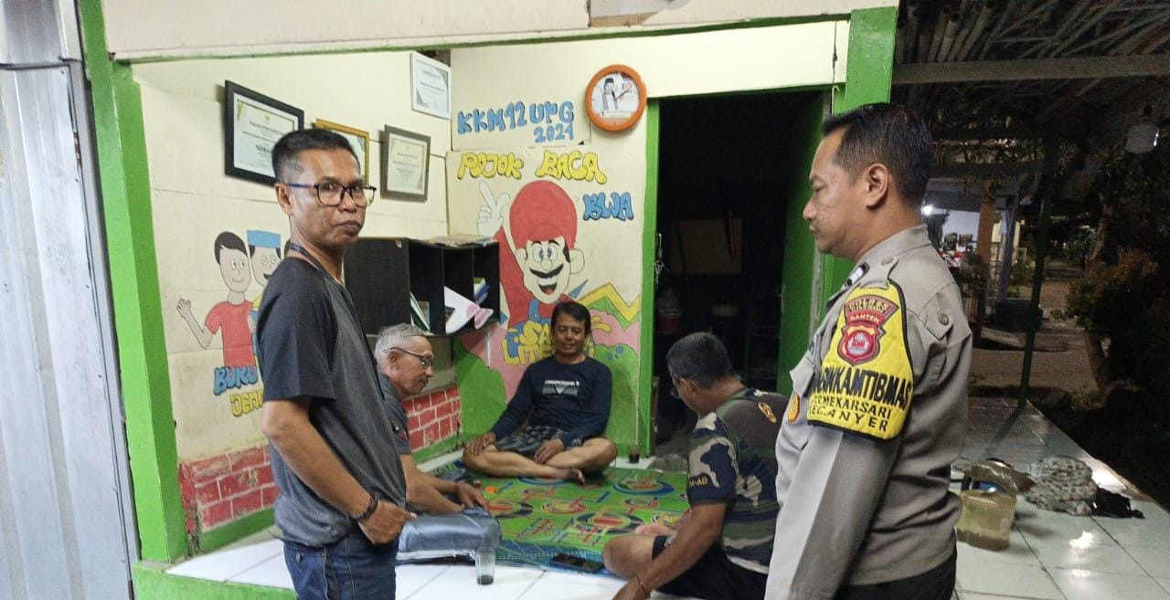 Cilegon - Personel Bhabinkamtibmas Polsek Anyar Polres Cilegon Polda Banten Aiptu Irvan melaksanakan sambang Ronda Siskamling Dalam rangka menjaga Harkamtibmas dan Sebagai bentuk mendukung Program Quick Wins Presisi Polri, Selasa (04/10).