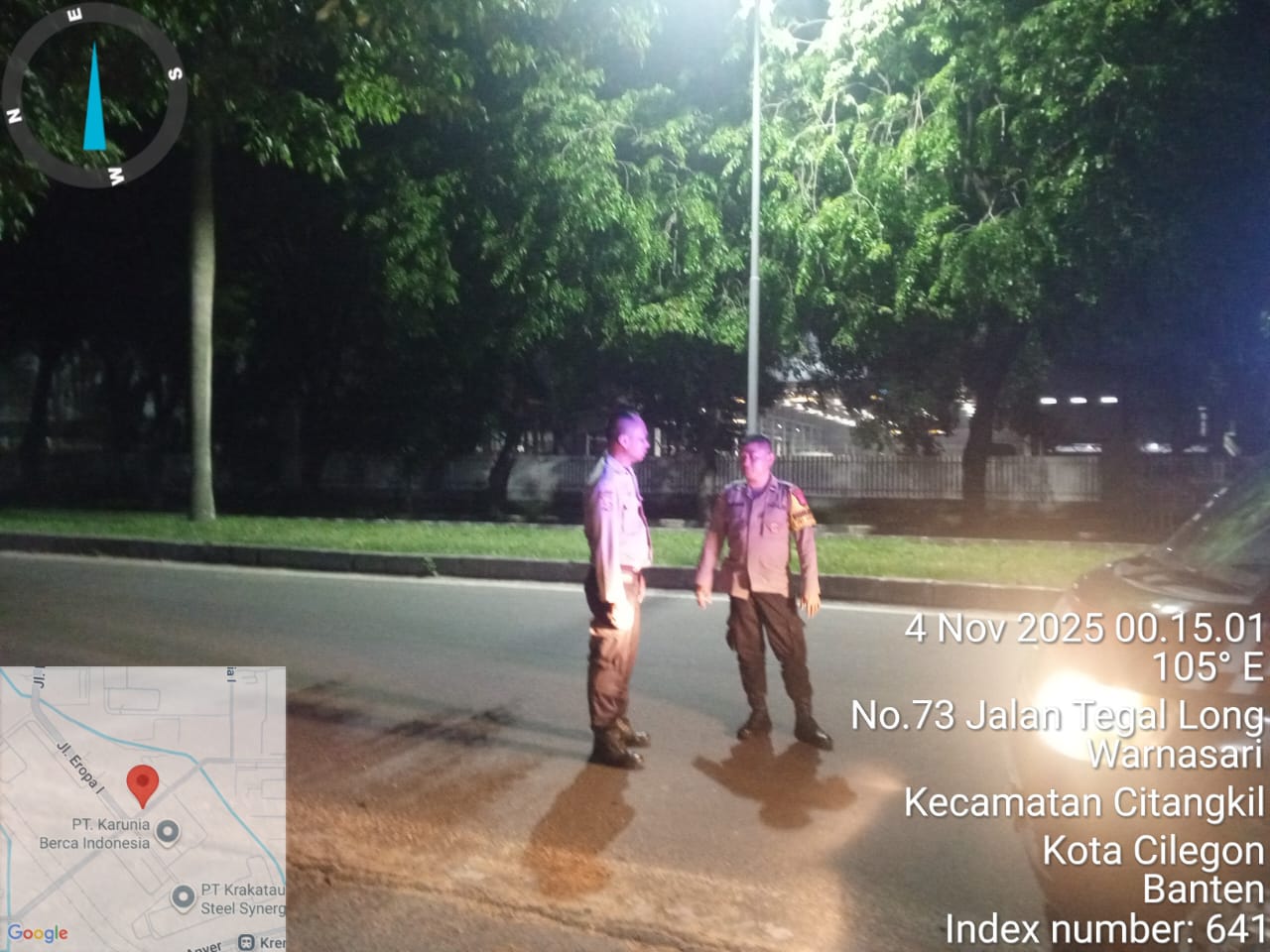 Cilegon - Personil Polsek Ciwandan Polres Cilegon Polda Banten Selalu Melaksanaan Kegiatan KRYD (Kegiatan Rutin Yang Ditingkatkan) Patroli Rutin malam hari di daerah hukum Polsek Ciwandan Guna Persempit Ruang Pelaku Tindak Kejahatan, Selasa (04/11/2025).