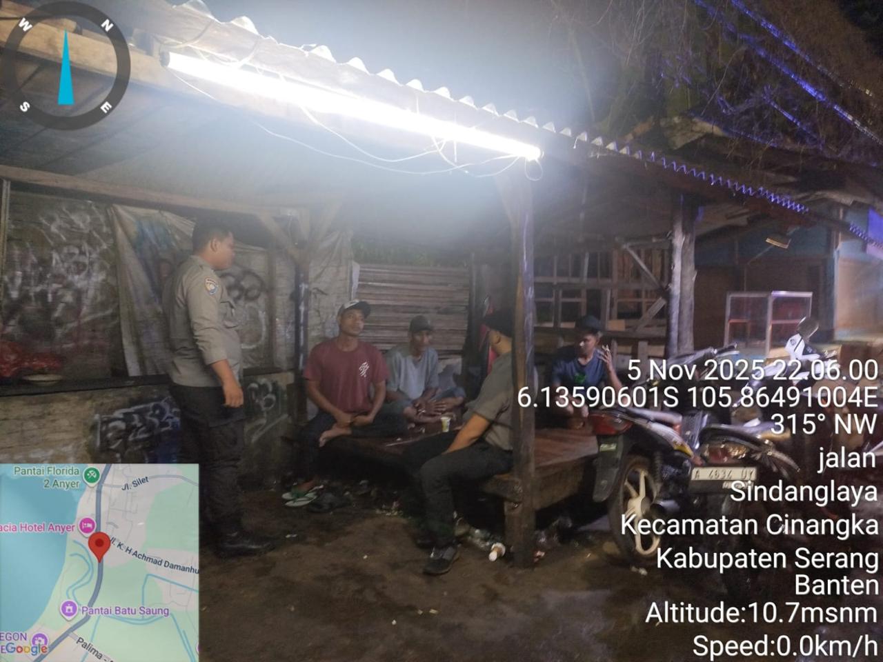 *Cilegon* – Dalam Rangka Pencegahan Kejahatan Jalanan dan Memelihara situasi keamanan dan menjaga serta memberikan rasa aman dan nyaman di masyarakat,Salah satu upaya untuk mewujudkan hal tersebut sebagaimana yang dilakukan oleh Personil Polsek Cinangka Polres Cilegon Polda Banten melaksanakan giat patroli blue light malam hari hingga menjelang pagi, Kamis (06/11/2025).