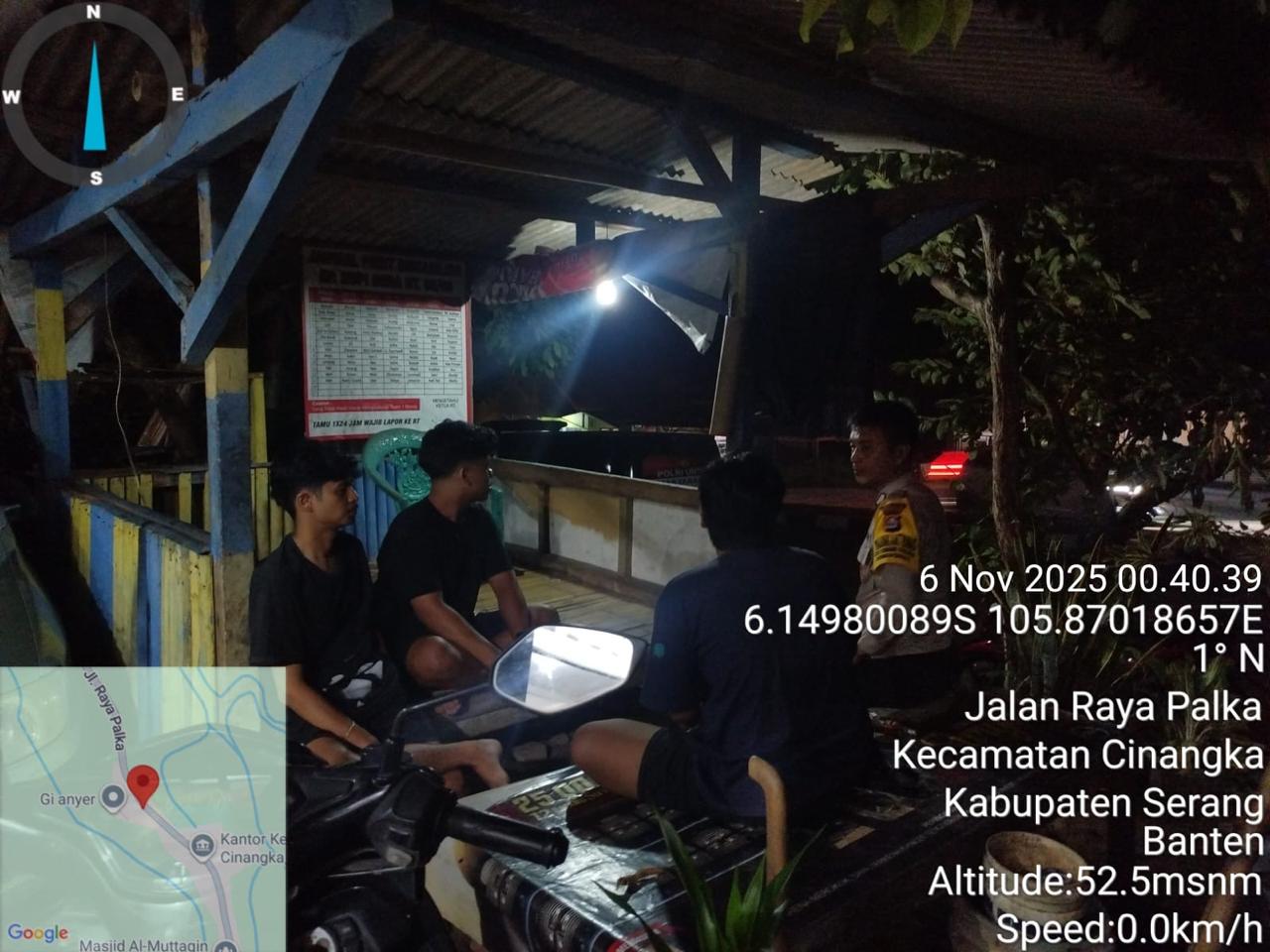 *Polres Cilegon* || Personil Bhabinkamtibmas Polsek Cinangka melaksanakan Program Komandan Wish Kapolda Banten RONDA SATKAMLING menyampaikan komunikasi dengan Petugas Siskamling agar berperan aktif dalam menciptakan Harkamtibmas yang aman dan Kondusif, Kamis (06/11/2025).