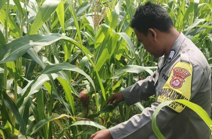 Polsek Anyar Giat Cek Lahan Tanaman Jagung di Desa Binaan