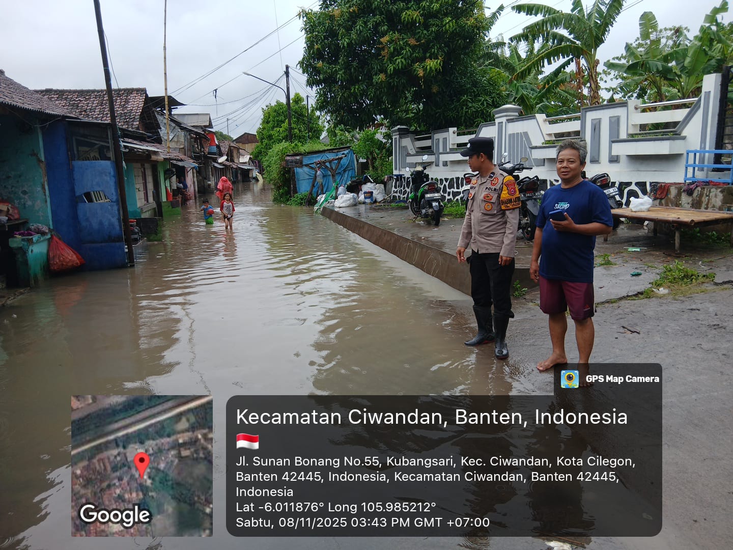 Kapolres Cilegon Polda Banten AKBP Dr. Martua Raja Taripar Laut Silitonga Melalui Kapolsek Ciwandan Polres Cilegon KOMPOL Andi Suherman Mengatakan bahwa Personil Bhabinkamtibmas Kelurahan Kubangsari Polsek Ciwandan Polres Cilegon AIPDA Asep Karyudin melakukan monitoring rumah warga paska hujan yang menyebabkan rumah warga tergenang air di lingkungan Cigading pasar sekitar 63 rumah.
