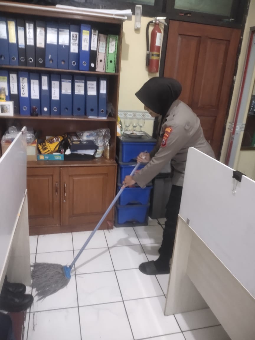 Anggota Bag SDM Polres Cilegon, selalu melakukan aktivias rutin membeersihkan ruangan kerja