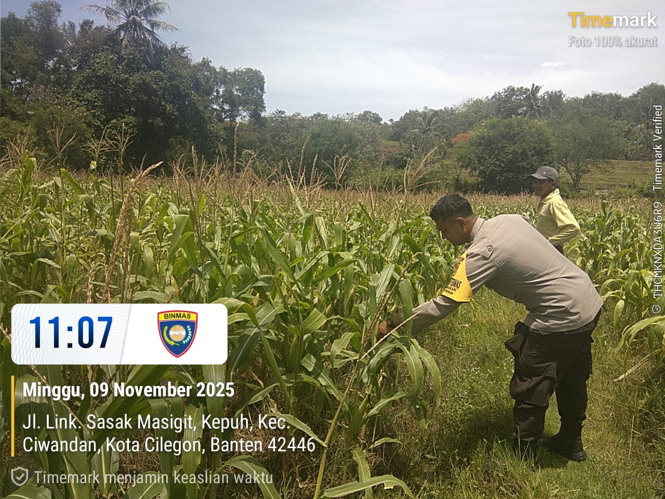 Cilegon - Dalam rangka memberikan dukungan kepada Pemerintah terkait Ketahanan pangan, Bhabinkamtibmas Ciwandan Polres Cilegon Polda Banten melaksanakan Implementasikan Program Asta Cita Presiden dengan fokus pada sektor Pertanian tanaman Jagung dilingkungan Binaan, Minggu (09/11/2025).