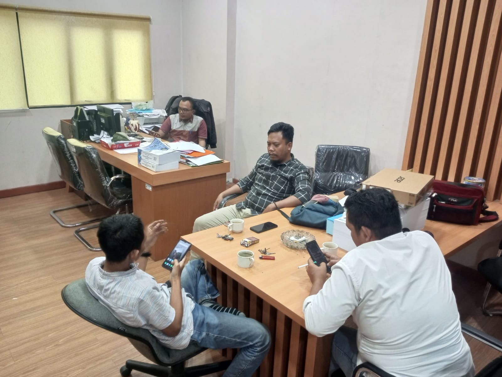 Personil sat intelkam melakukan koordinasi dengan Bawaslu kota cilegon.