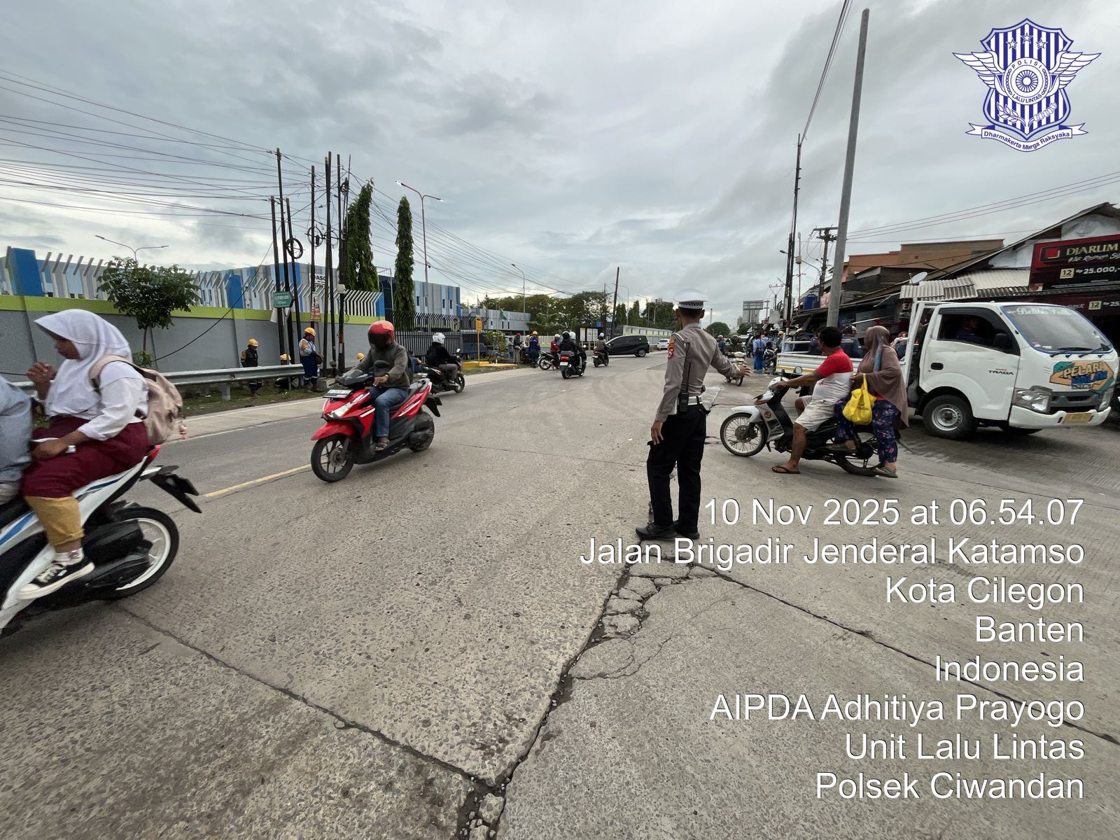 Cilegon - Tingginya mobilitas masyarakat pada jam-jam sibuk, tingkat kerawanan baik itu kemacetan ataupun kecelakaan pasti ada potensi, sehingga untuk mengantisipasi hal tersebut Personil Polsek Ciwandan Polres Cilegon Polda Banten Bhabinkamtibmas melaksanakan Strong Point pada sejumlah lokasi, Kamis (10/11/2025).