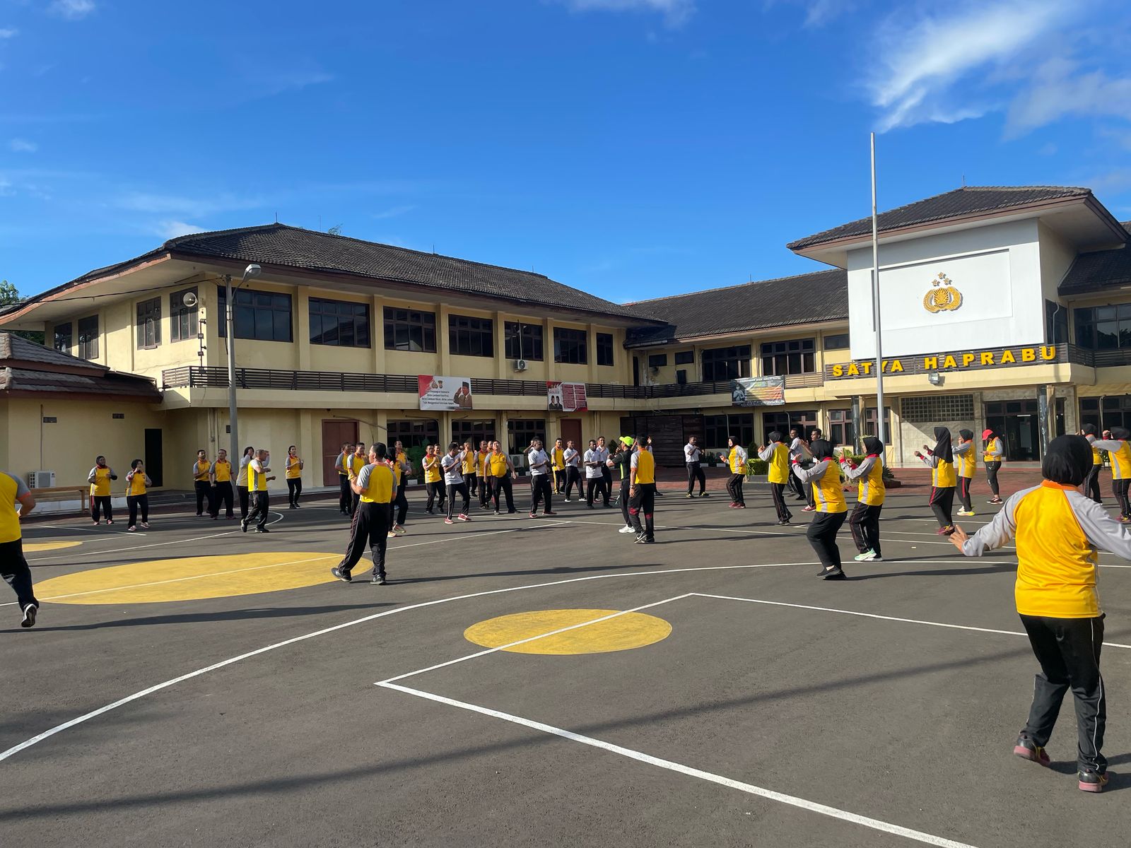 Sebelum pelaksanaan olahraga bersama ini, terlebih dahulu dilaksanakan apel pagi, sebagai bentuk pengecekan kesiapan personel dalam menjalankan rutinitas.