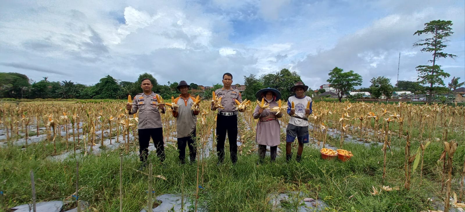 Cilegon - Polsek Ciwandan Polres Cilegon Polda Banten mendukung kegiatan panen jagung Hibrida hasil penanaman Poktan Blumbang Tani di Kelurahan Tegal Ratu, Kecamatan Ciwandan, Kota Cilegon, Kamis (13/11/2025)