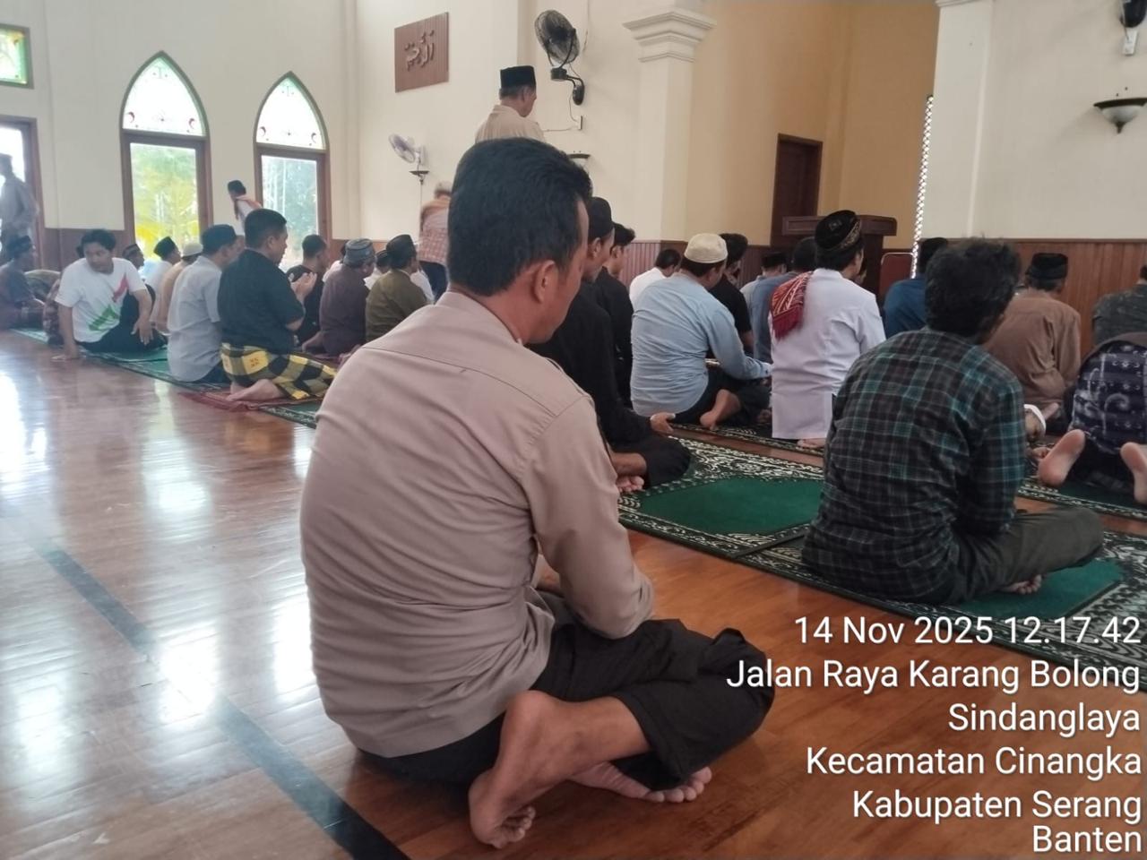 *POLRES CILEGON* - Kapolsek Cinangka Polres Cilegon Polda Banten dan Jajaran melaksanakan giat Juma't keliling dalam rangka silaturahmi menjalin kemitaraan dan menjaga Harkamtibmas di Desa Binaannya sebagai bentuk mendukung Program Quick Wins Presisi Polri, Jumat (14/11/2025).