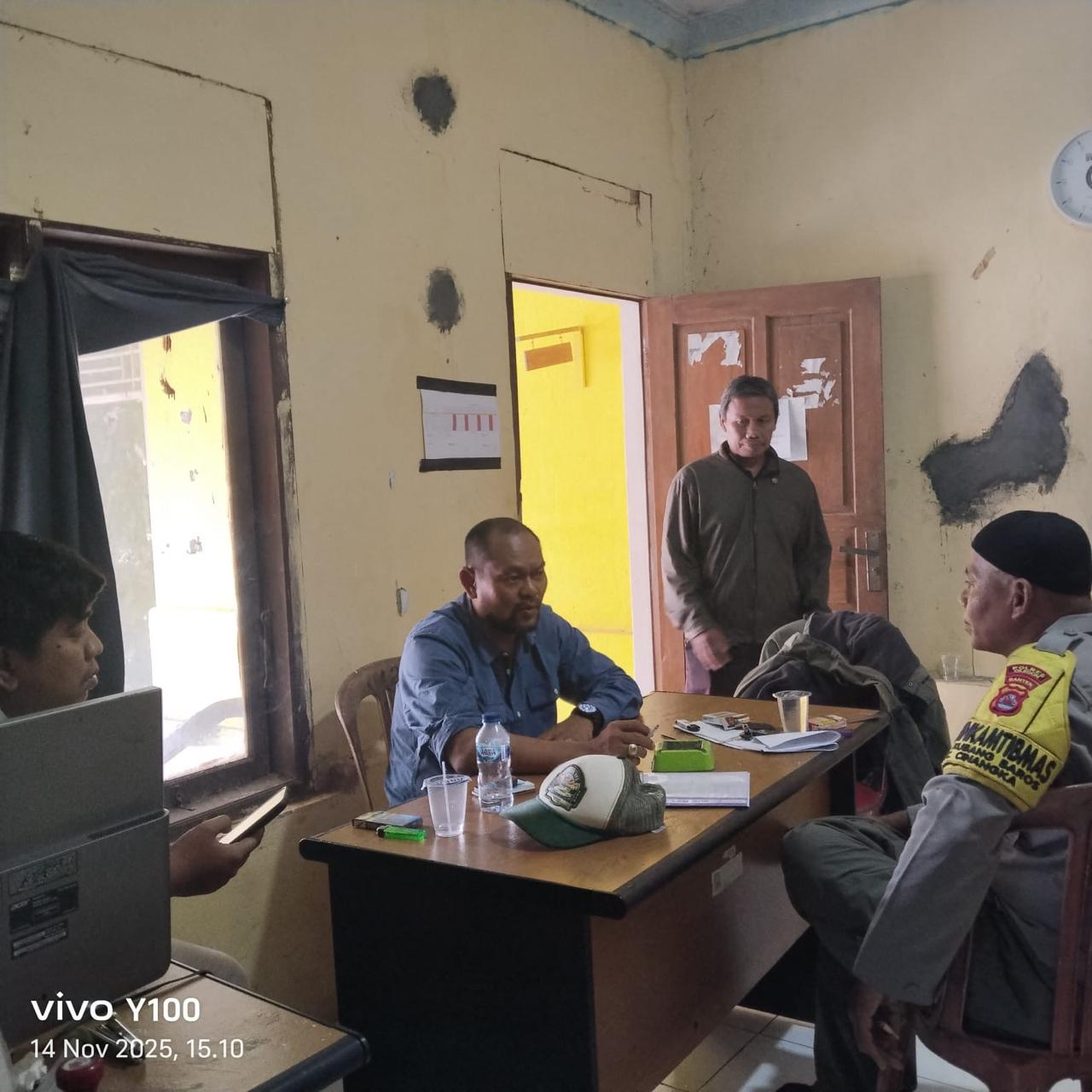 *CILEGON* dalam Rangka Mengantisipasi Gktm di wilayah Personil Bhabinkamtibmas Cinangka melakukan patroli Dialogis dengan Kepala Desa dan warga dan Menanyakan situasi Kamtibmas di wilayah dalam Rangka Menjaga Harkamtibmas di Desa Binaannya Kecamatan Cinangka Kab. Serang. Jumat.(14/11/2025).