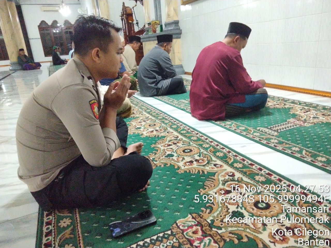 “Dalam kegiatan tersebut, Personil Polsek Kp Polres Cilegon Polda Banten turut berbaur dengan jemaah masjid dalam melaksanakan shalat subuh berjamaah. Setelah itu, dilakukan dialog interaktif antara petugas kepolisian dan masyarakat untuk mendengarkan aspirasi serta memperoleh masukan terkait dengan situasi keamanan dan ketertiban di lingkungan sekitar,” tambah Kapolsek.