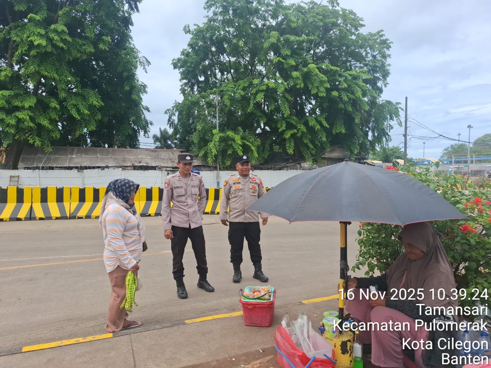 Cilegon - Personel Polsek Kskp Merak Polres Cilegon Polda Banten melaksanakan sambang dan patroli kawasan pelabuhan merak dalam rangka menjaga Harkamtibmas di Kawasan Pelabuhan Merak, Minggu (16/11/2025).