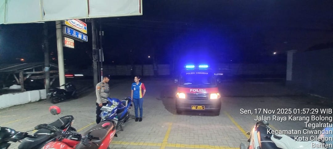 Cilegon - Patroli ini digelar oleh personil Polsek Ciwandan Polres Cilegon Polda Banten untuk Menekan Gangguan Kamtibmas dan mengantisipasi aksi kriminalitas Pada Jam-jam Rawan di pertokoan ataupun minimarket ,Di samping Patroli petugas juga melakukan himbauan dialogis baik dengan karyawan maupun para pengunjung, Senin (17/11/2025).