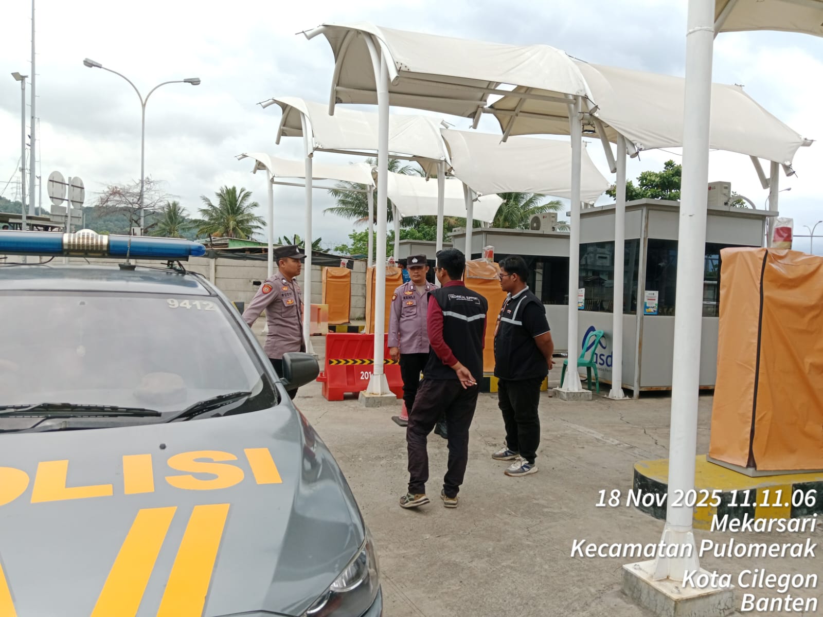Cilegon - Personel Polsek Kskp Merak Polres Cilegon Polda Banten melaksanakan sambang dan patroli kawasan pelabuhan merak dalam rangka menjaga Harkamtibmas di Kawasan Pelabuhan Merak, Selasa (18/11/2025).