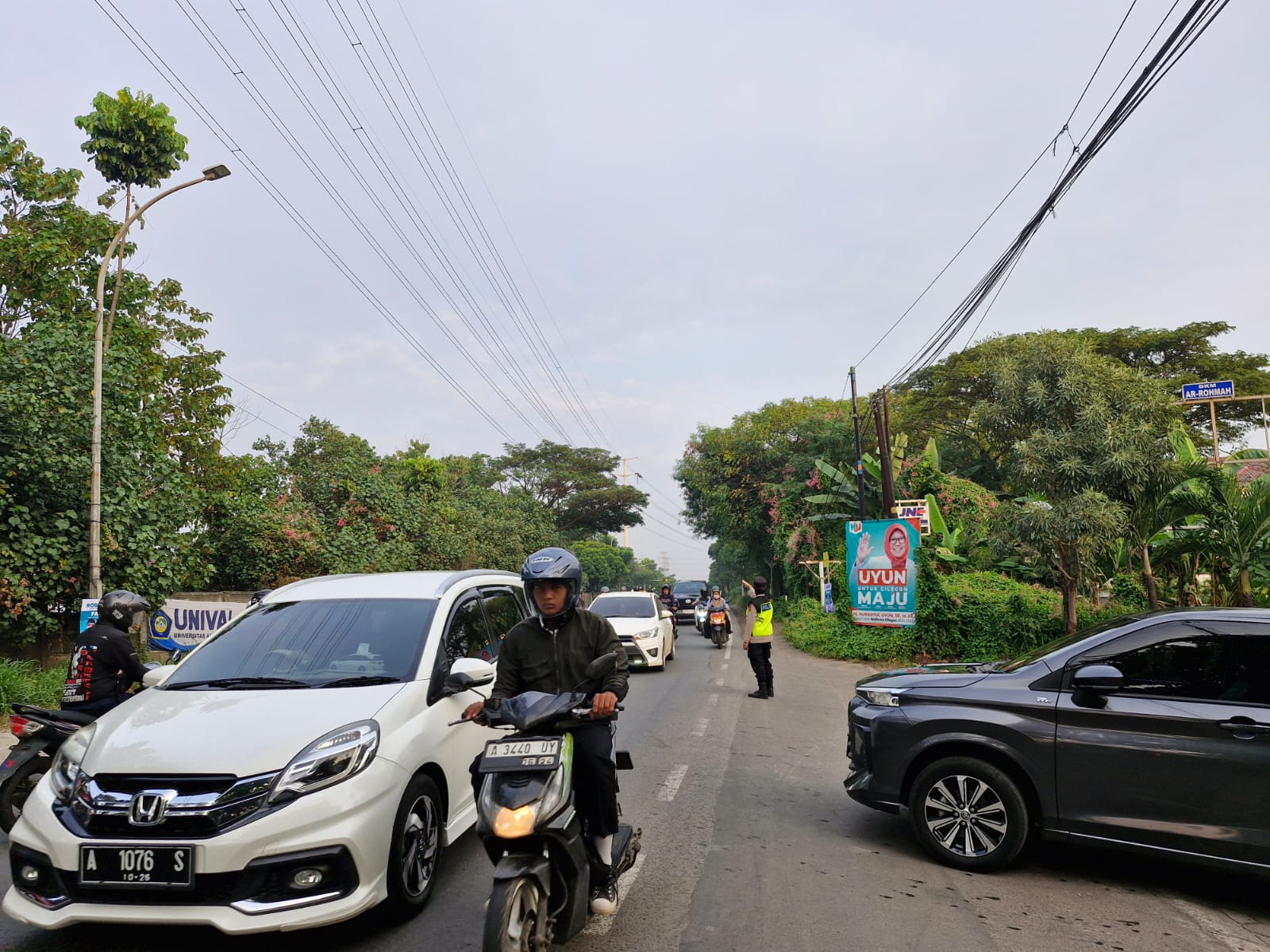 Polres Cilegon, Aipda Emi Prasetyo melaksanakan kegiatan pengaturan arus lalu
