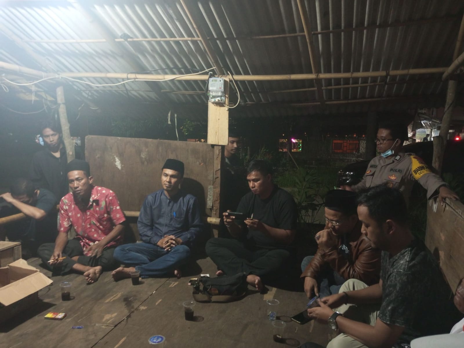 Personil sat intelkam melakukan koordinasi dengan tokoh pemuda kec. Ciwandan kota cilegon.