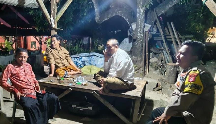 Bhabinkamtibmas bincang dialogis bersama warga saat ronda siskamlinh