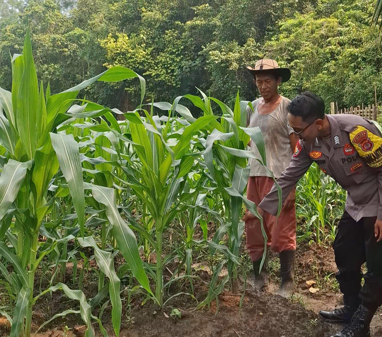 Bhabinkamtibmas Polsek Anyar Bersama Poktan Monitor dan Cek Pertumbuhan Tanaman Jagung