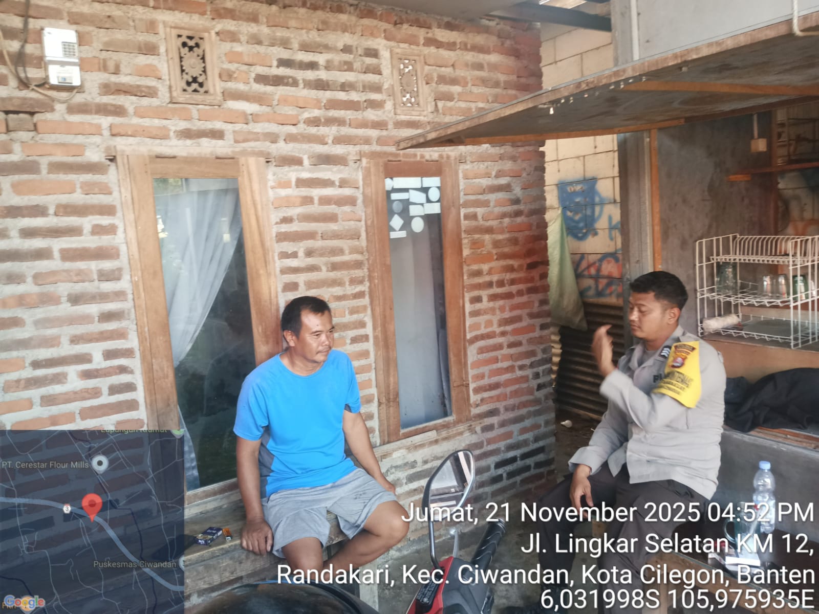 Cilegon - Bhabinkamtibmas Polsek Ciwandan Polres Cilegon Polda Banten Melaksanakan Sambang Dialogis Sambil Ngopi Bareng Warga sekaligus Bahas Ketertiban Dan Keamanan Lingkungan Binaan, Jum'at (21/11/2025).