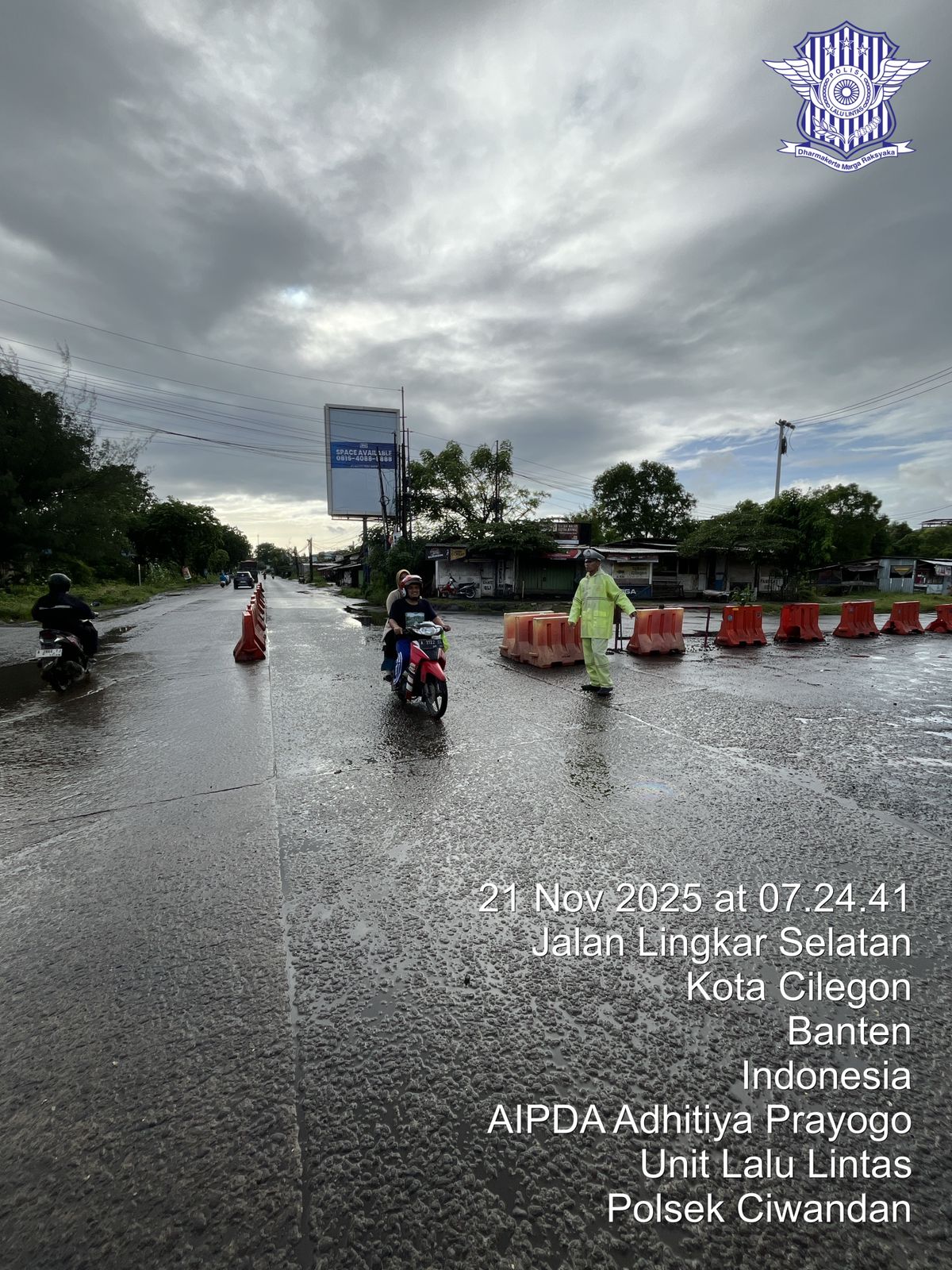 Cilegon - Pelayanan Prima Kepolisian Kepada Warga Masyarakat dan Guna menciptakan situasi lalu lintas yang aman, tertib dan lancar, Personel Unit Lantas Polsek Ciwandan Polres Cilegon Polda Banten secara rutin melaksanakan pengaturan lalu lintas, Jum'at (21/11/2025).