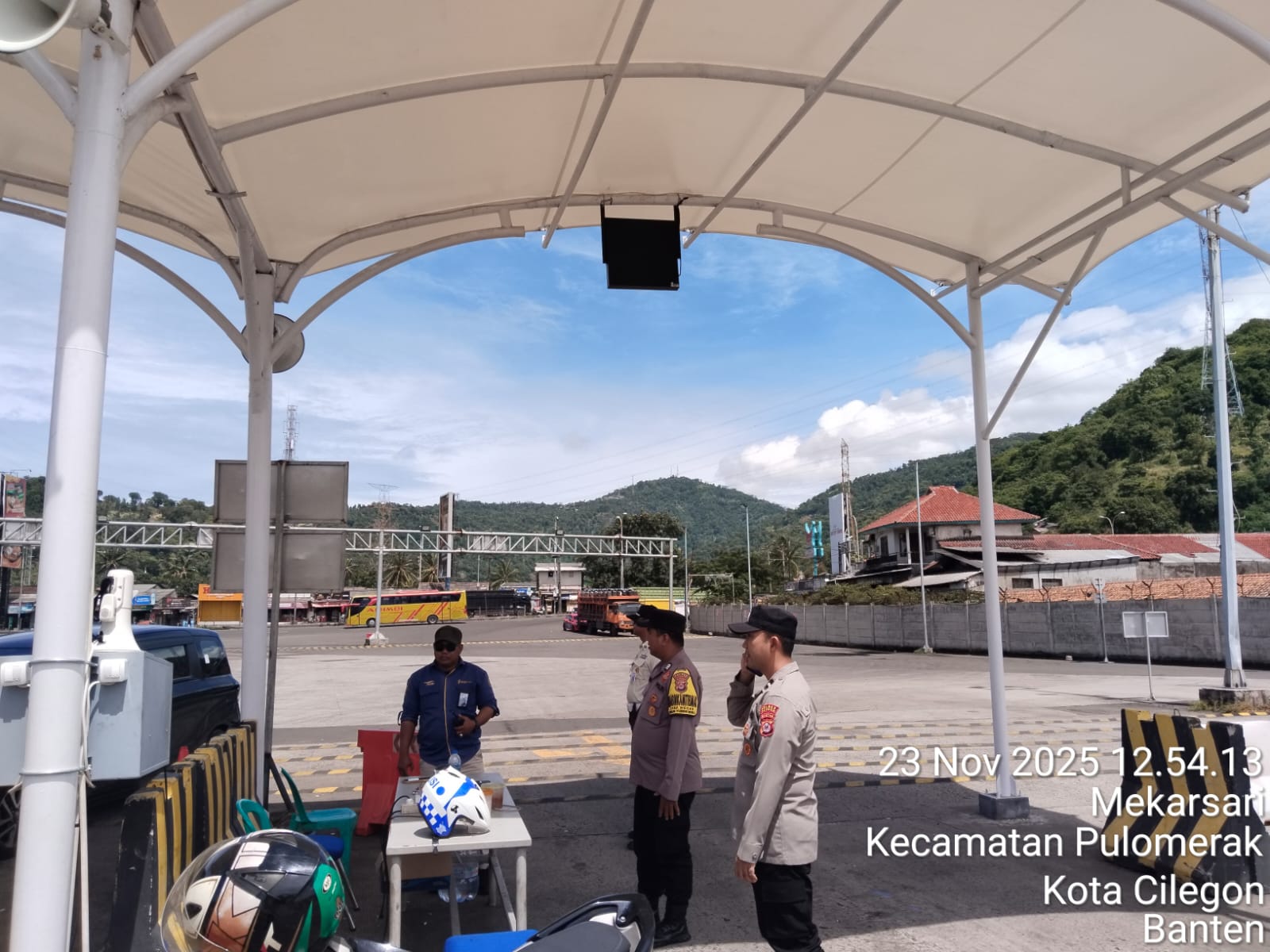 Cilegon - Personel Polsek Kskp Merak Polres Cilegon Polda Banten melaksanakan sambang dan patroli kawasan pelabuhan merak dalam rangka menjaga Harkamtibmas di Kawasan Pelabuhan Merak, Minggu (23/11/2025).