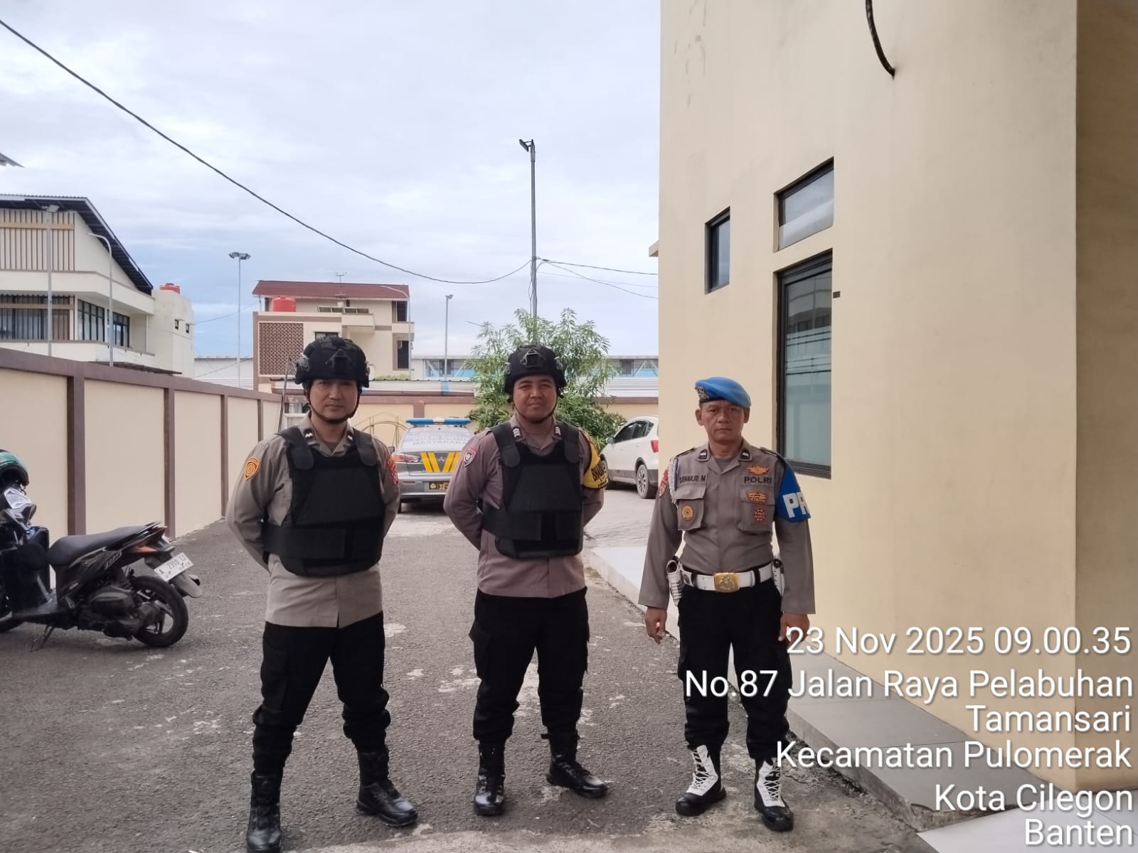 Cilegon - Personel piket jaga Polsek Kskp Merak Polres Cilgon Polda Banten melaksanakan siaga 1 Polsek pelaksanaan Sispam Mako oleh piket siaga dipimpin oleh Kspk Polsek Kskpy Merak Polres Cilegon Polda Banten, Minggu (23/11/2025).