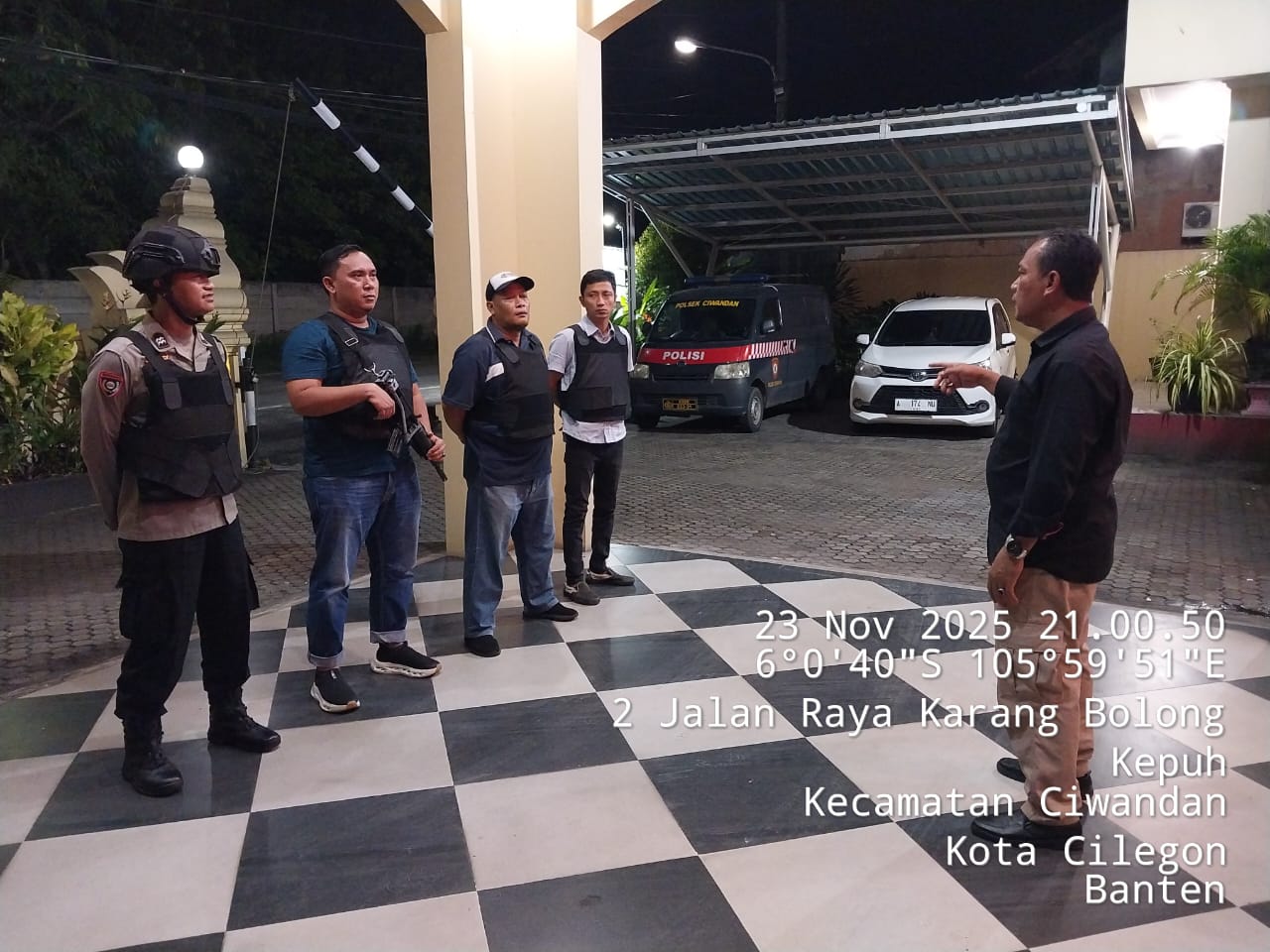 Cilegon - Personil Polsek Ciwandan Polres Cilegon Polda Banten menggelar apel malam Persiapan Patroli yang dipimpin Oleh Pawas Panit Intelkam Polsek Ciwandan IPTU Ali Asron, Minggu (23/11/2025).