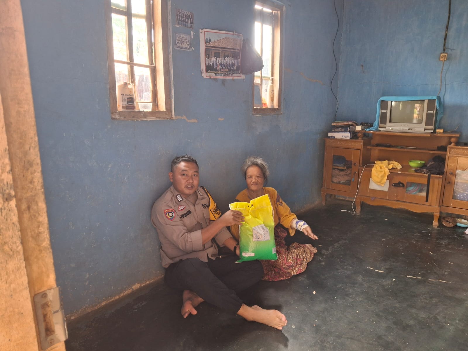 Bhabinkamtibmas Polsek Mancak Polres Cilegon melaksanakan sambang dan silatuhrahmi serta memberikan bantuan berupa beras kepada ibu Rami warga kp tangsi ds balekencana.