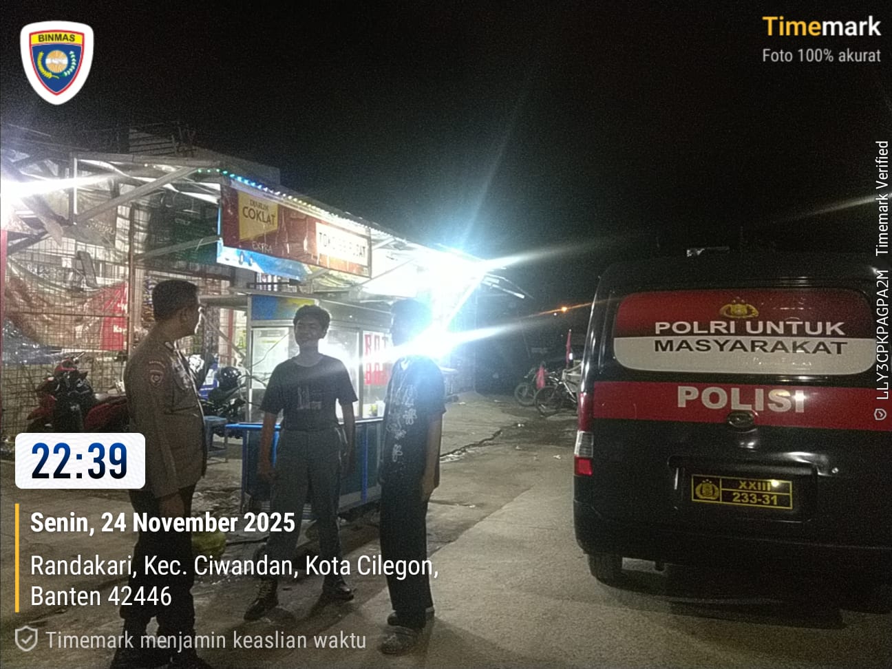 Cilegon - Polsek Ciwandan Polres Cilegon Polda Banten kembali menunjukkan komitmennya dalam menciptakan keamanan dan ketertiban masyarakat (kamtibmas) yang kondusif melalui Kegiatan Patroli Malam, Kegiatan ini dilakukan secara rutin dengan berkeliling di daerah hukum Polsek Ciwandan,Selasa (25/11/2025).