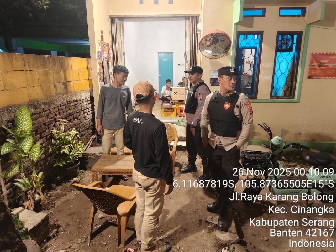 *Polres Cilegon* – Dalam Rangka Pencegahan Kejahatan Jalanan dan Memelihara situasi keamanan dan menjaga serta memberikan rasa aman dan nyaman di masyarakat,Salah satu upaya untuk mewujudkan hal tersebut sebagaimana yang dilakukan oleh Personil Polsek Cinangka Polres Cilegon Polda Banten melaksanakan giat patroli blue light malam hari hingga menjelang pagi, Rabu (26/11/2025).
