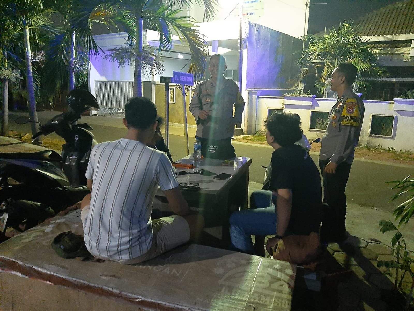 Anggota unit patroli samapta Polsek Cilegon sambangi ronda malam sampaikan pesan kamtibmas jaga keamanan dilingkungan wilayah hukum nya