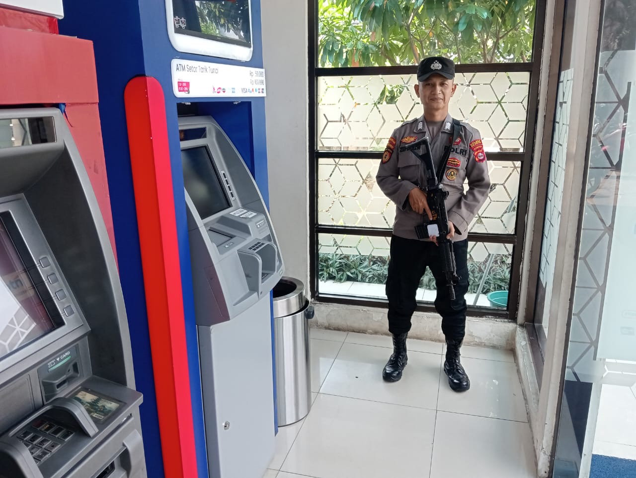 Pers satpamobvit cek situasi disekitar bank