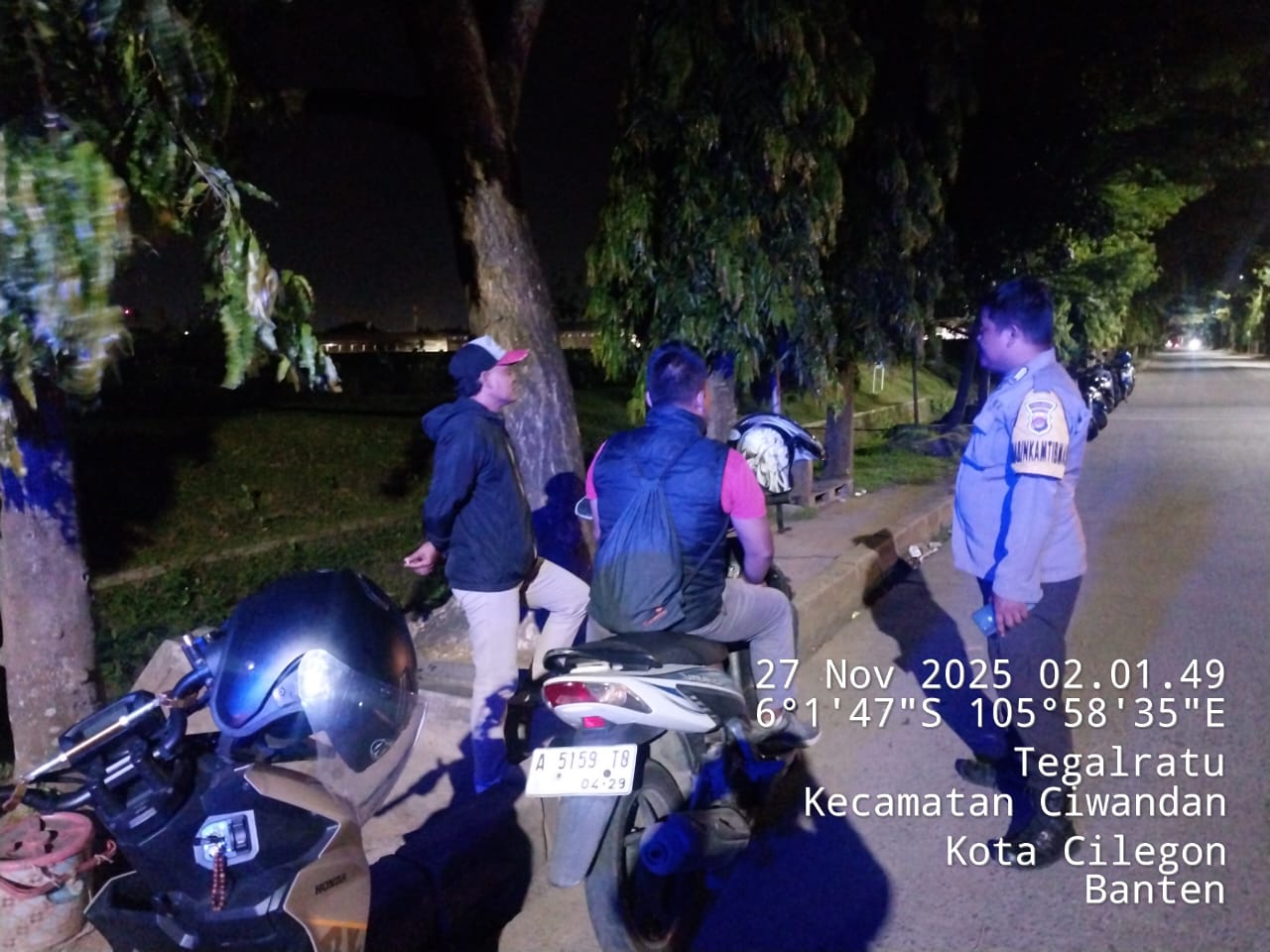 Cilegon - Personil Polsek Ciwandan Polres Cilegon Polda Banten Dalam Pelaksanaan Kegiatan Patroli dengan menyalakan lampu rotator berwarna biru di Daerah Hukum Polsek Ciwandan Polres Cilegon Polda Banten dari malam hingga dini hari, dalam rangka menciptakan situasi aman dan kondusif, Kamis (27/11/2025).