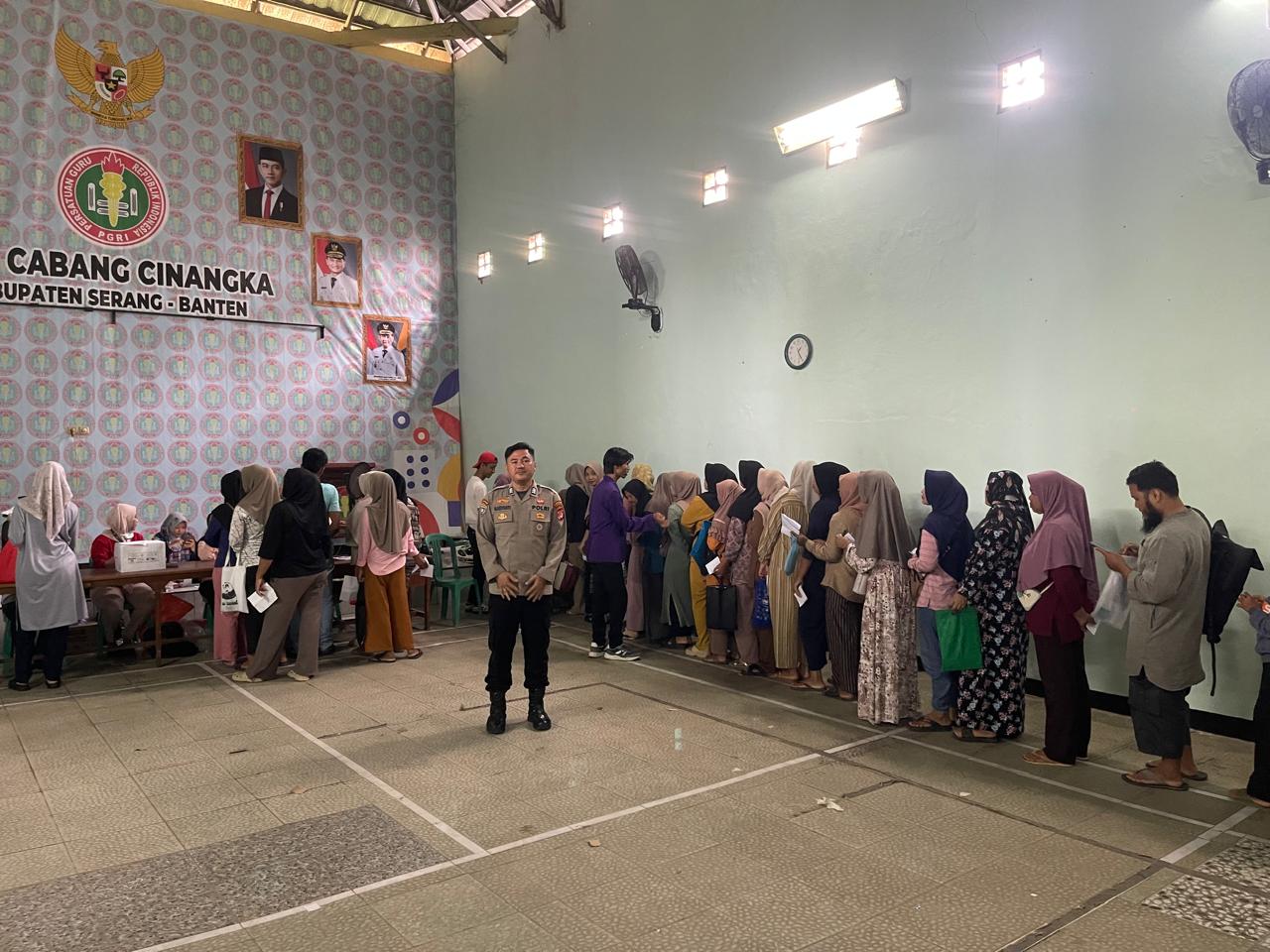 -POLRES CILEGON-Pold Banten. Bhabinkamtibmas Brigpol Mardiyanto bersama Pihak Terkait, aktif memantau pelaksanaan pembagian Bantuan Langsung Tunai (BLTS) Kesejahteraan Rakyat (Kesra) tahun 2025 di Kantor PGRI Kecamatan Cinangka. Bantuan ini berasal dari Kementerian Sosial RI.