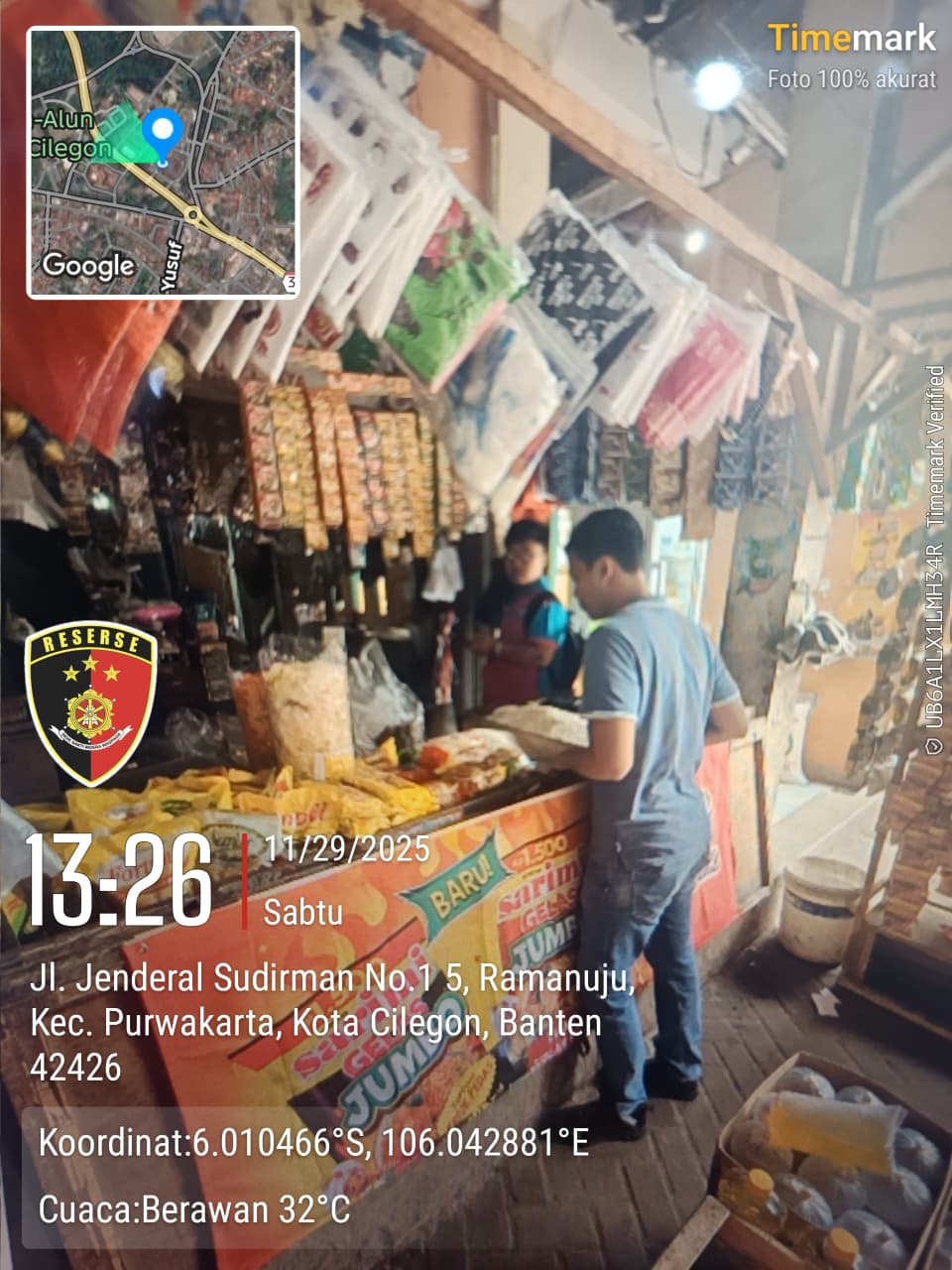 Cilegon – Unit II Satreskrim Polres Cilegon Polda Banten melakukan pengecekan terhadap persediaan dan harga bahan pangan di Pasar Kelapa, Cilegon, tahun 2025. Sabtu tanggal 29 11 2025.
