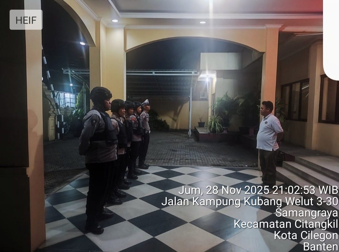 Cilegon - Personil Polsek Ciwandan Polres Cilegon Polda Banten menggelar apel malam Persiapan Patroli yang dipimpin Oleh Pawas Polsek Ciwandan Yang Bertugas Pada Hari Itu, Sabtu (29/11/2025)