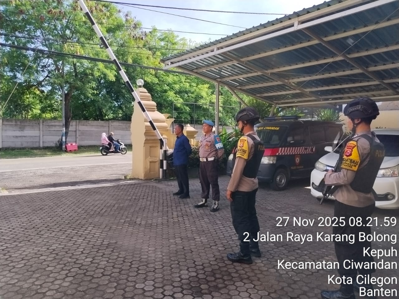 Kapolres Cilegon Polda Banten AKBP Dr. Martua Raja Taripar Laut Silitonga yang diwakili oleh Kapolsek Ciwandan Polres Cilegon Polda Banten KOMPOL Andi Suherman menerangkan bahwa sebagai langkah dalam mencegah timbulnya potensi gangguan dari luar terhadap keamanan kantor maupun keselamatan personel piket jaga, selalu memerintahkan kepada personel yang melaksanakan piket jaga Mako agar sewaktu-waktu menggelar kegiatan Sispam Mako.