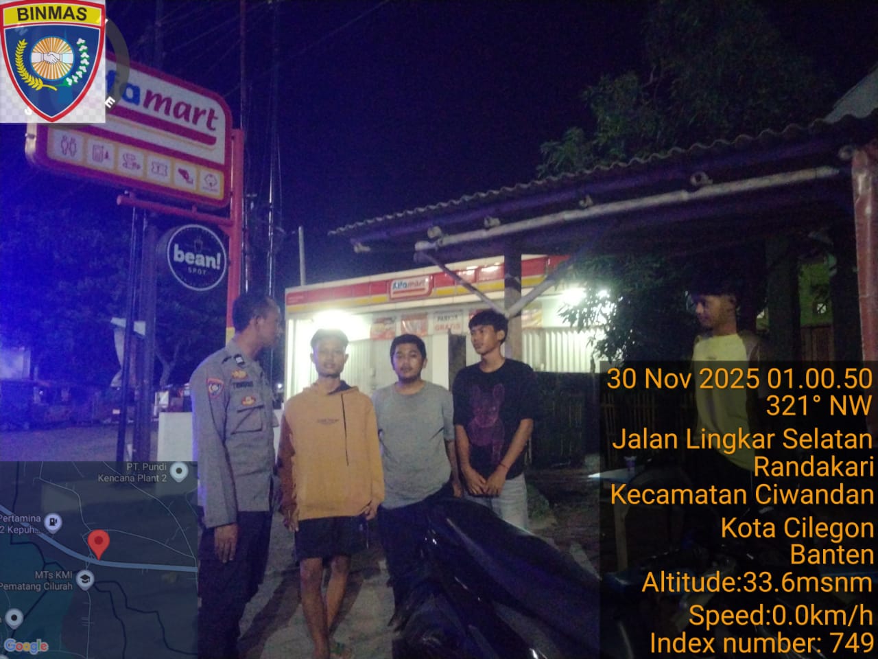 Cilegon - Bhabinkamtibmas Polsek Ciwandan Polres Cilegon Polda Banten Lakukan Sambang Malam guna mengantisipasi aksi kejahatan pada daerah binaan dan memberikan rasa aman dan nyaman kepada warga binaan, Minggu (30/11/2025).
